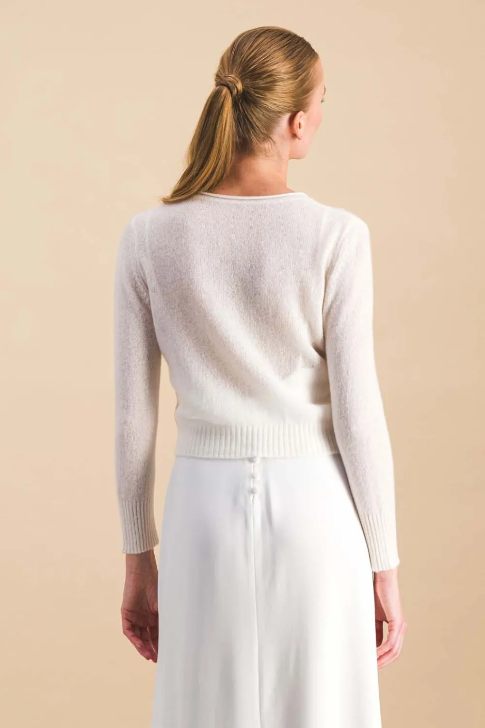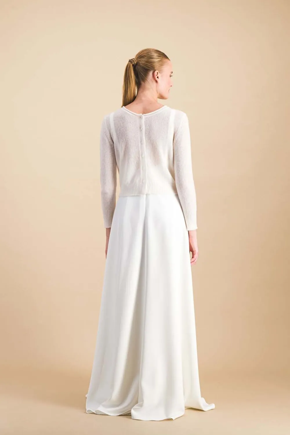 Gilet en cachemire blanc casséLongueur depuis l’épaule de 48 cm (Taille M)Encolure rondeFermeture par 5 petits boutons rondsGilet réversible (boutons devant ou dans le dos)Matière principale : 100 % cachemireNettoyage à secFabriqué en Chine