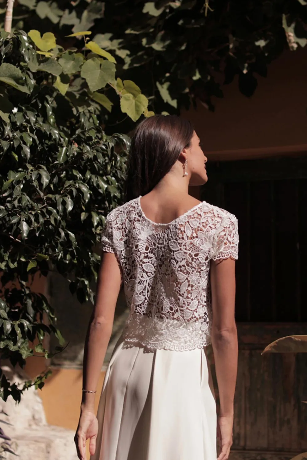 – Haut en dentelle blanc cassé, festonnée et motif cœurs