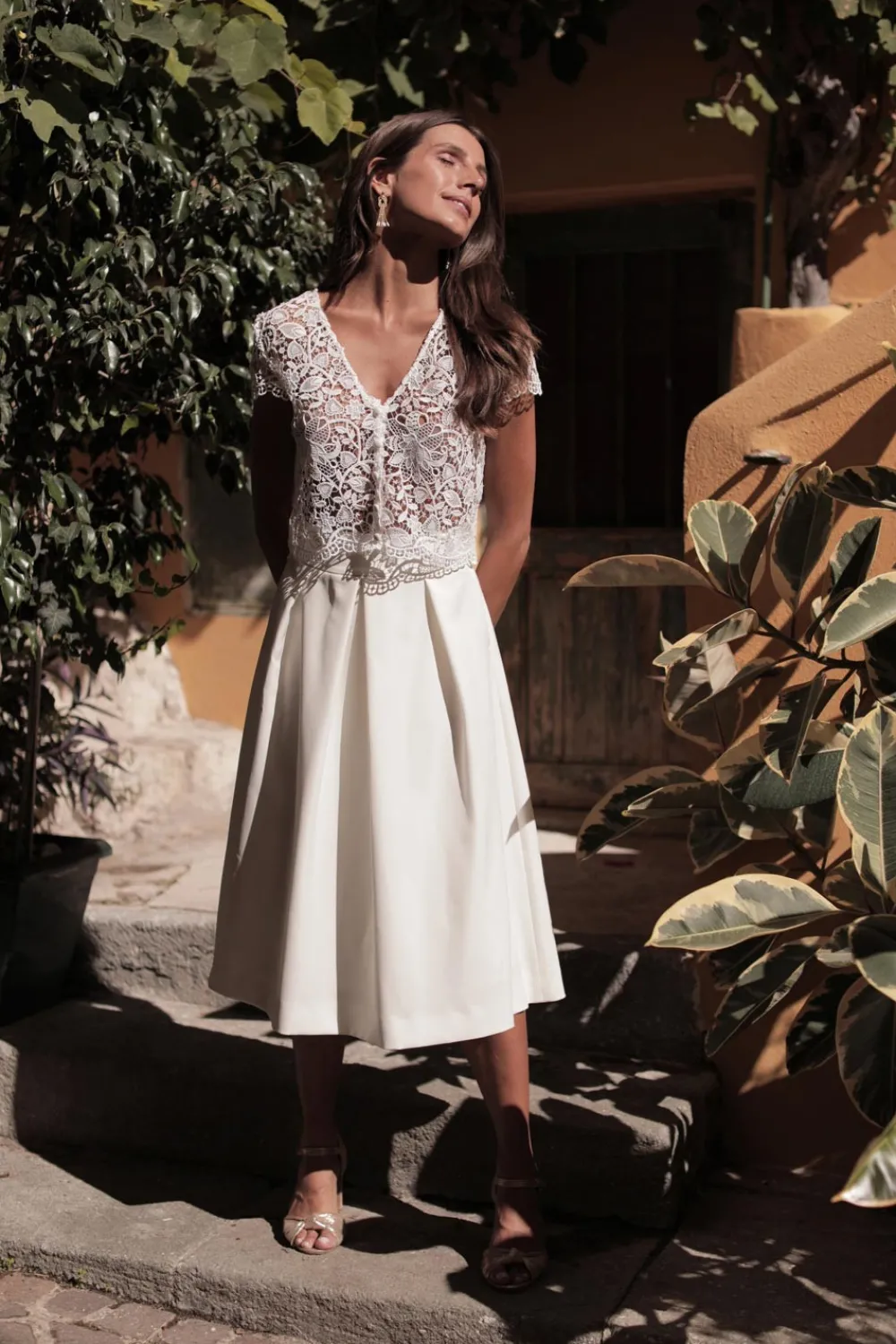 Alice porte la taille 36 et mesure 1m73 – Ses mensurations sont : poitrine 87 cm / taille 66 cm / hanches 90 cm.