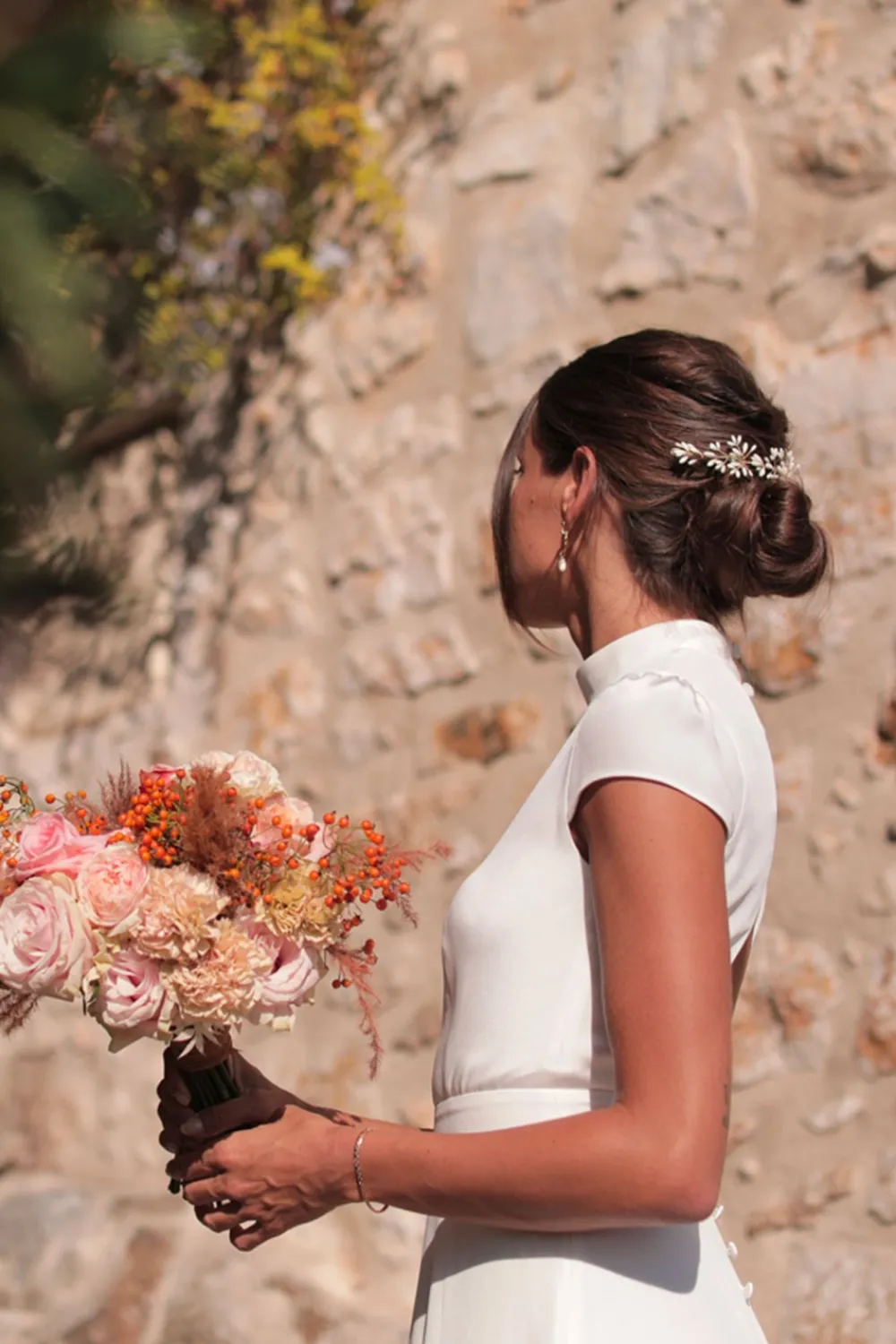 Claire est un peigne de porcelaine froide aux multiples détails monté sur un fil plaqué Or. Chaque branche est entièrement réalisée à la main par nos soins, de la monture aux motifs de porcelaine, dans les ateliers de Maison Massillon. Veuillez prévoir 3 semaine à compter de la date de la commande pour la livraison.