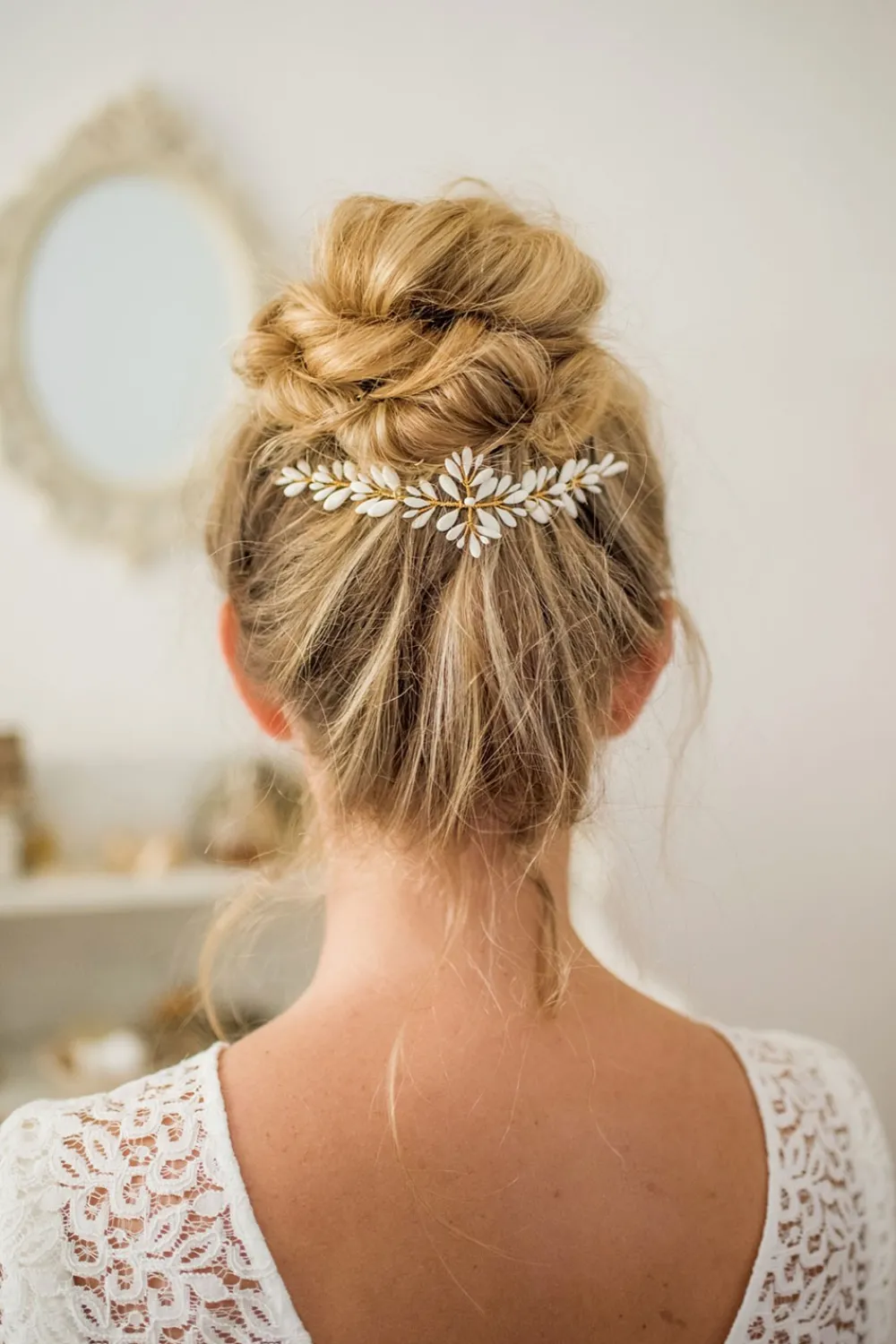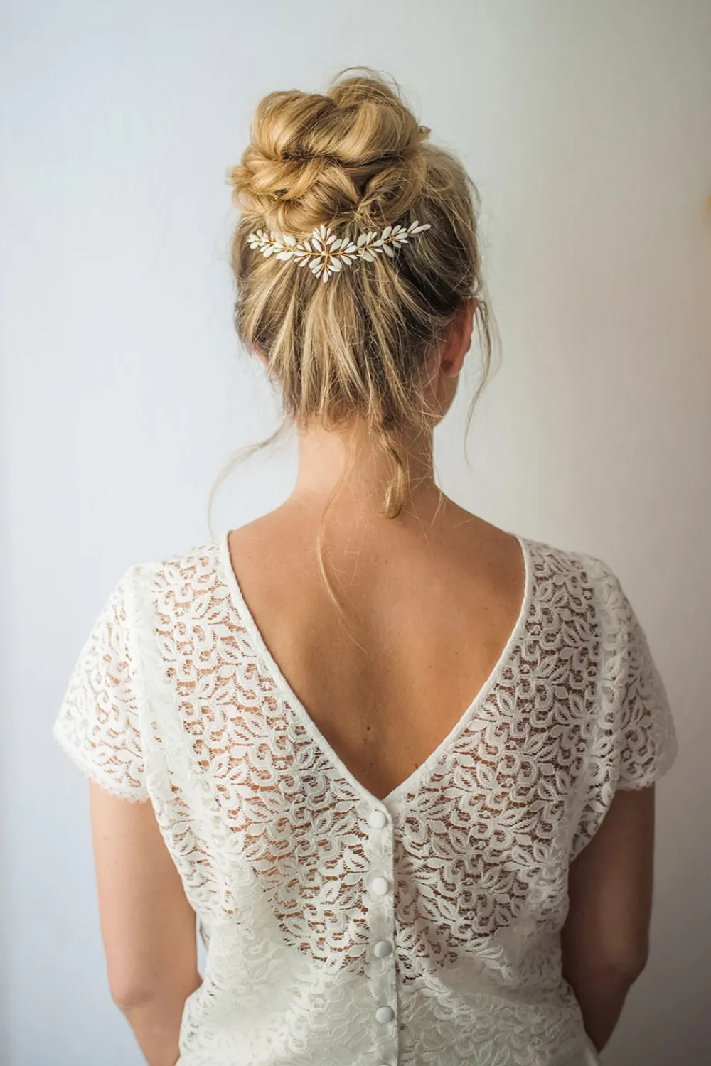 Singulière est un peigne de porcelaine froide aux multiples détails monté sur un fil plaqué Or. Chaque branche est entièrement réalisée à la main dans notre Atelier du sud de la France.