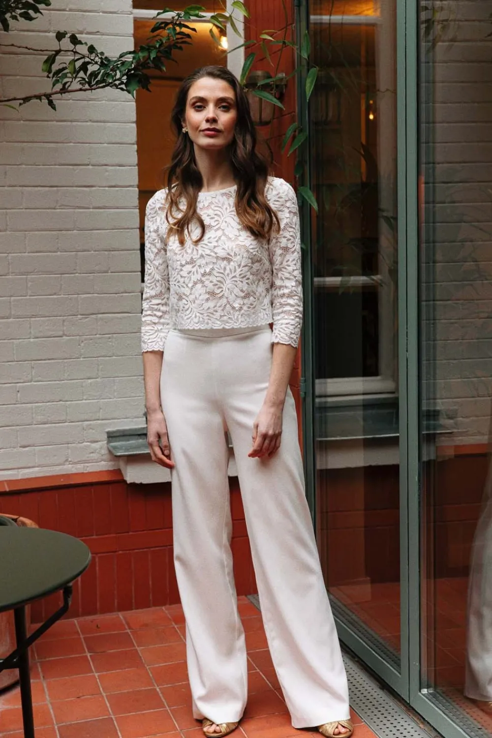 Le haut Madeleine est une pièce incontournable de nos collections. Vous pouvez facilement l'associer à tous nos bas, que ce soit nos jupes longues, mi-longues ou courtes ou encore nos pantalons, pour créer la tenue de vos rêves. Avec son ouverture subtile dans le bas du dos, ce haut au charme discret ajoute une touche de féminité et de sensualité pour vous sublimer lors de votre grand jour.