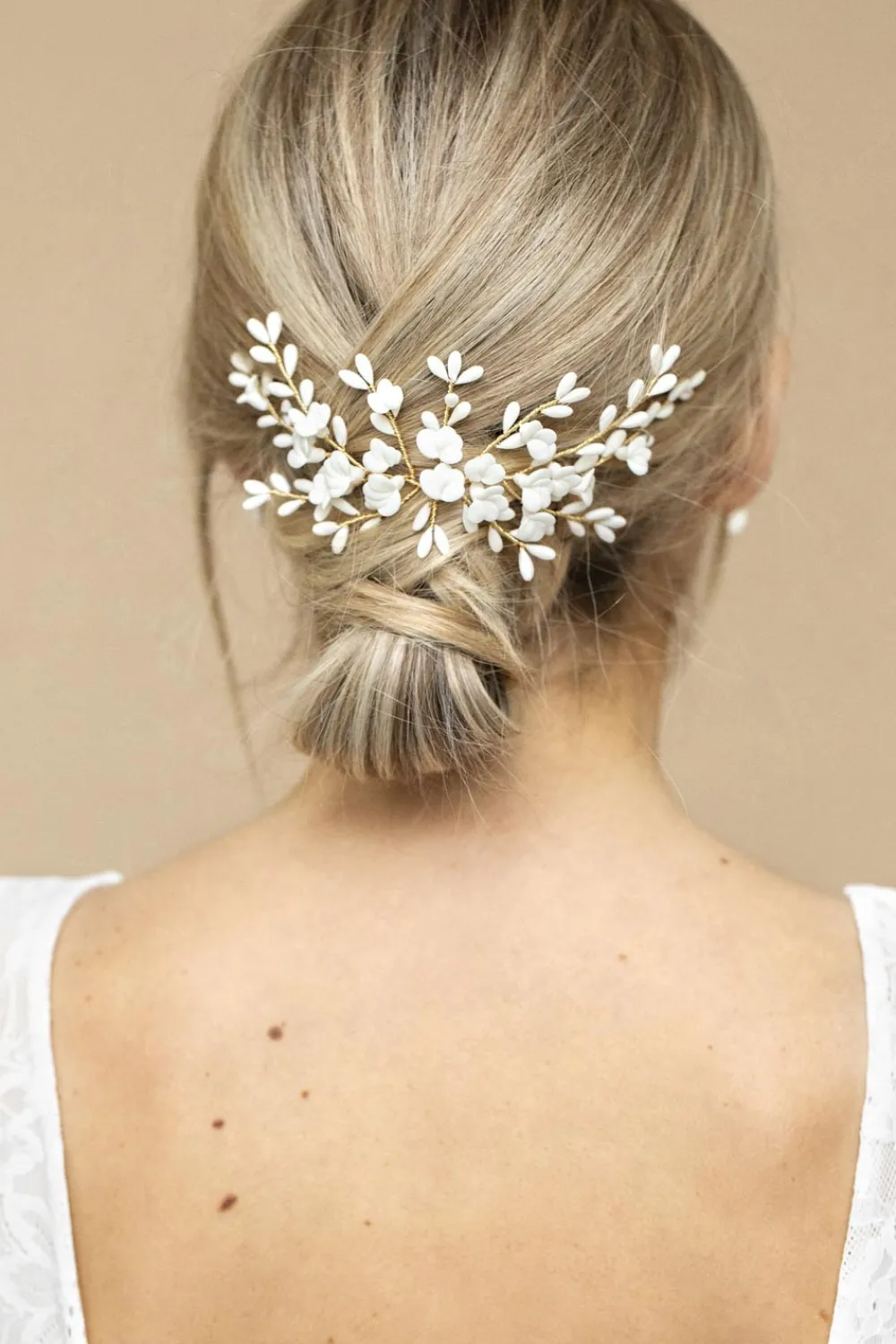 Rayonnez pour le plus beau jour de votre vie et incarnez la classe et le romantisme à l’italienne avec le peigne Roma. Chaque branche est entièrement réalisée à la main par la créatrice en porcelaine froide. Collection « Je t’aime à l’italienne ».