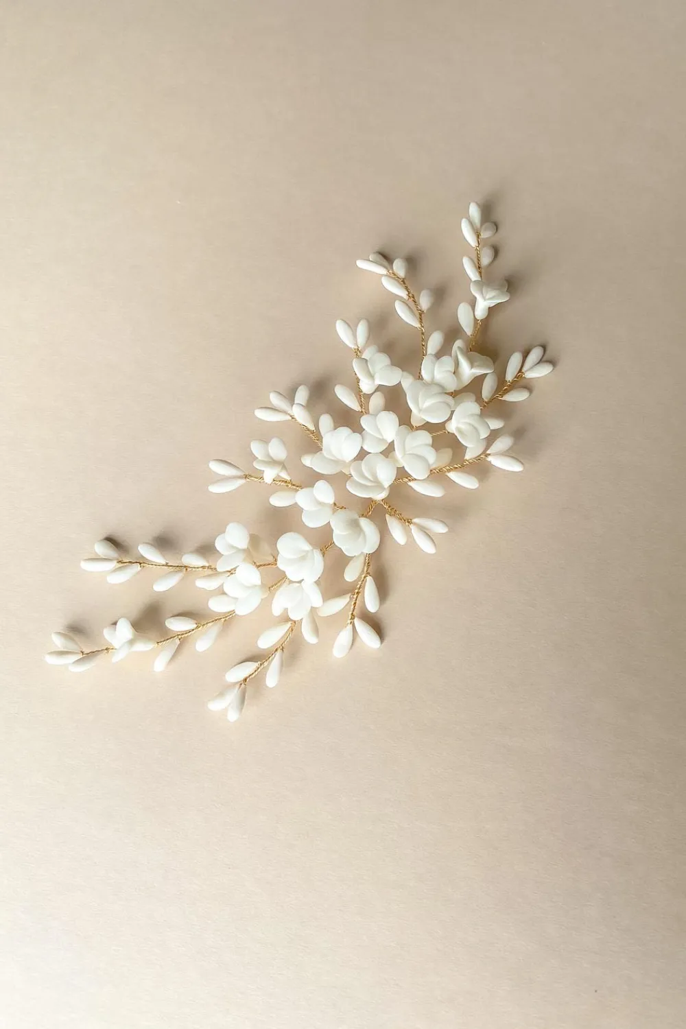 Rayonnez pour le plus beau jour de votre vie et incarnez la classe et le romantisme à l’italienne avec le peigne Roma. Chaque branche est entièrement réalisée à la main par la créatrice en porcelaine froide.