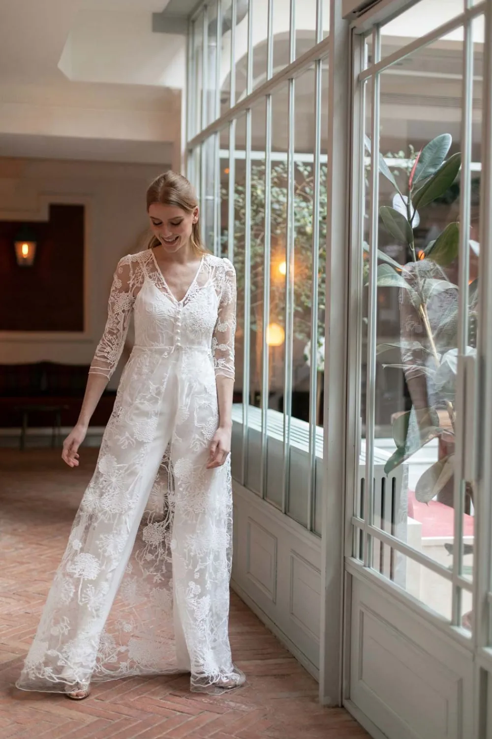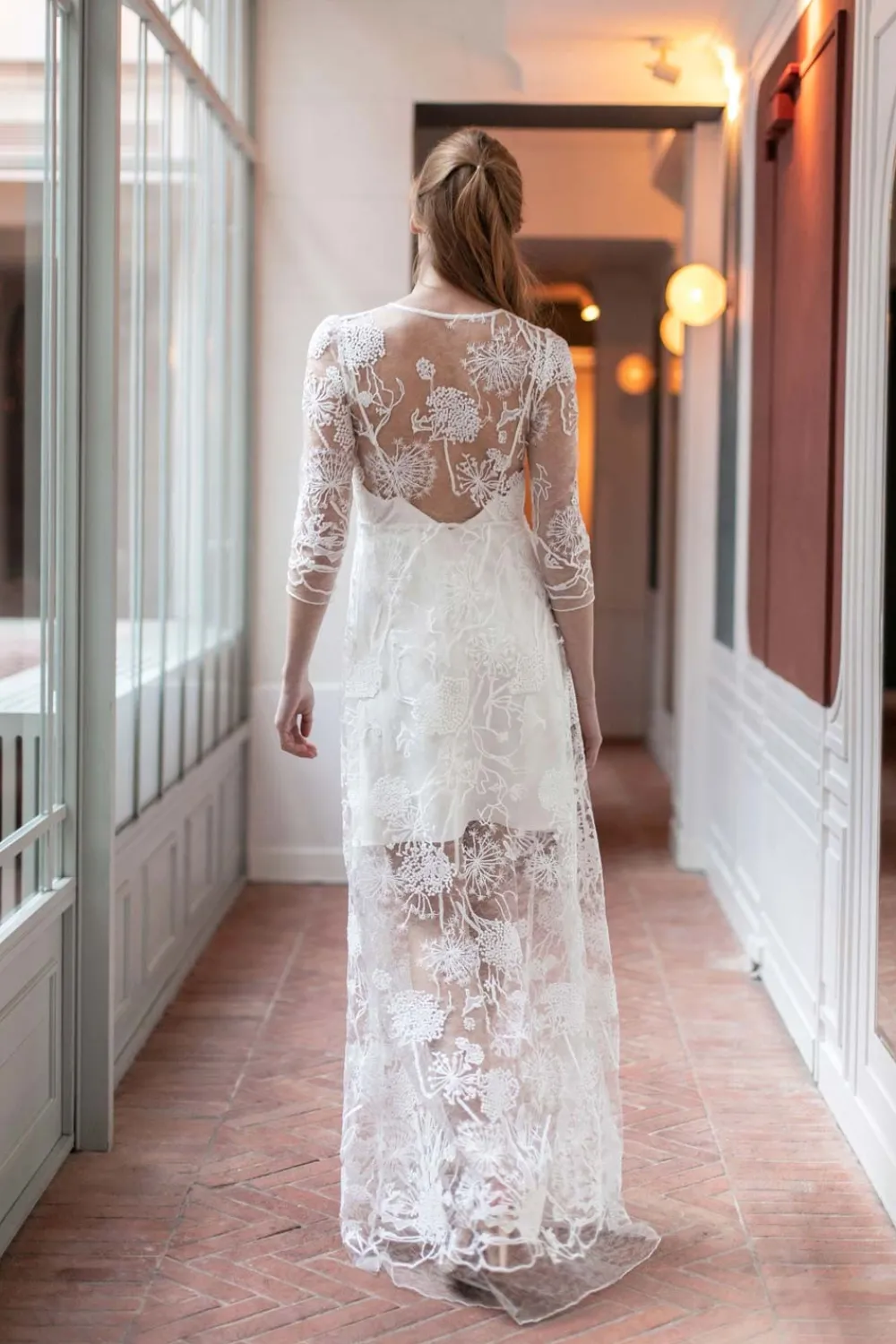 – Kimono dentelle tulle brodé blanc non doublée, à manches ¾