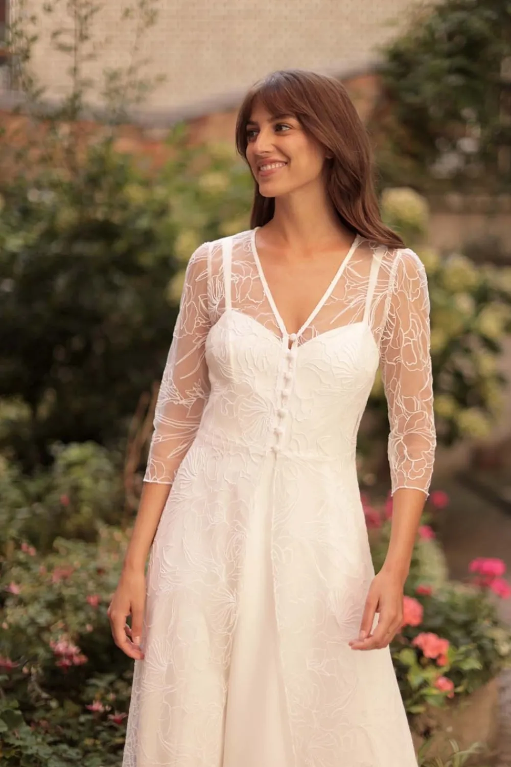 – Ouverture avec 7 boutons ronds recouverts en crêpe blanc cassé au milieu devant