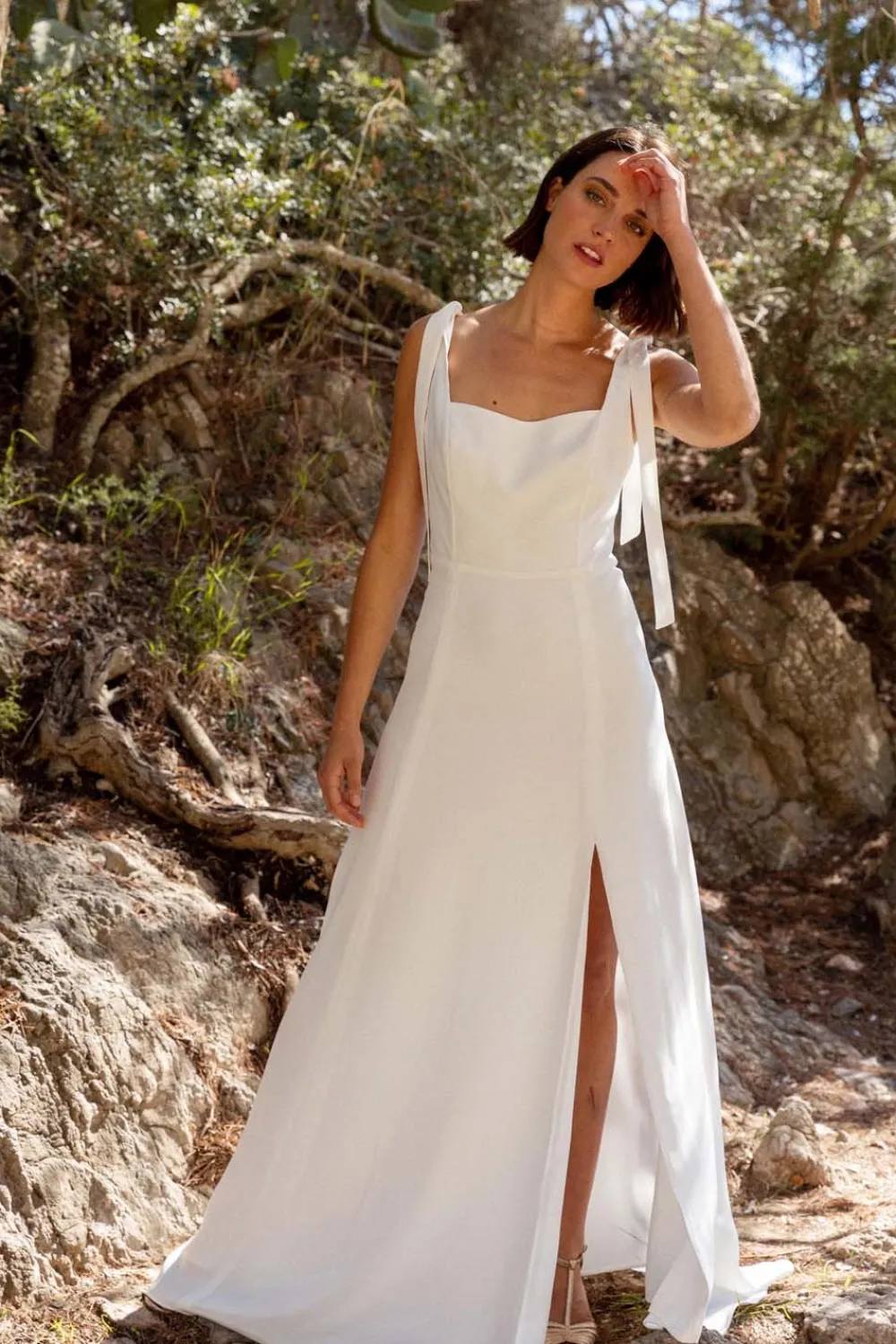 – Bustier à décolleté carré avec bretelles à nouer